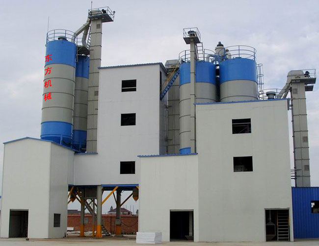 主要由提升輸送系統(tǒng)、計量配料系統(tǒng)、混合系統(tǒng)、儲料系統(tǒng)、包裝系統(tǒng)、除塵系統(tǒng)、控制系統(tǒng)、鋼架平臺等組成。